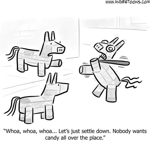 Cartoon Description Whoa, whoa, whoa... Let’s just settle down. Nobody wants candy all over the place.